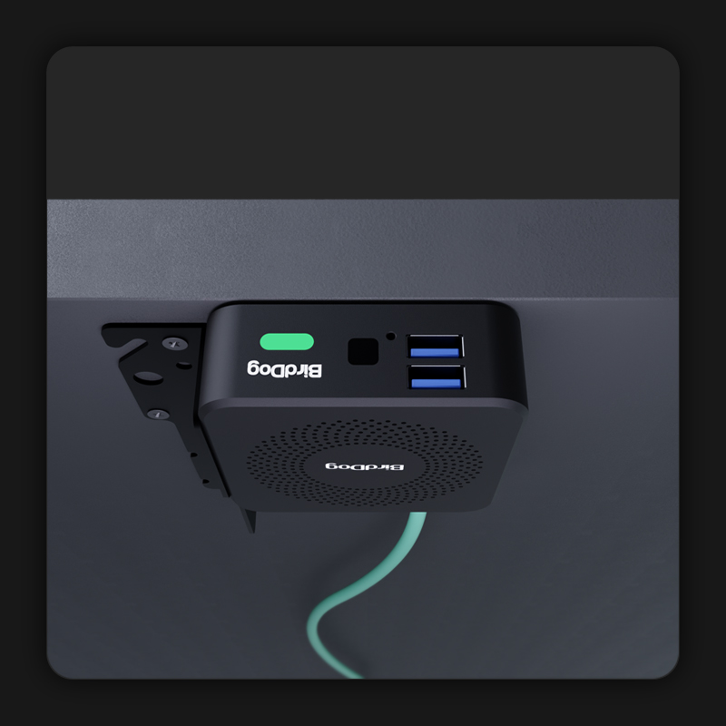 PLAY Pro is designed to live in professional environments. Its rugged metal enclosure, combined with an included VESA mount, allows it to be securely installed behind a display, inside an AV cabinet, under a desk — in any orientation.