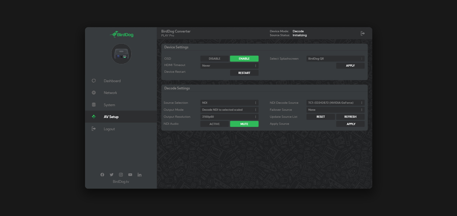 BirdDog PLAY Pro is the simplest way to put NDI® video on a display. Whether it’s a camera feed, return feed, confidence monitor, or live video away from the switcher, PLAY Pro gets it there — instantly and reliably.